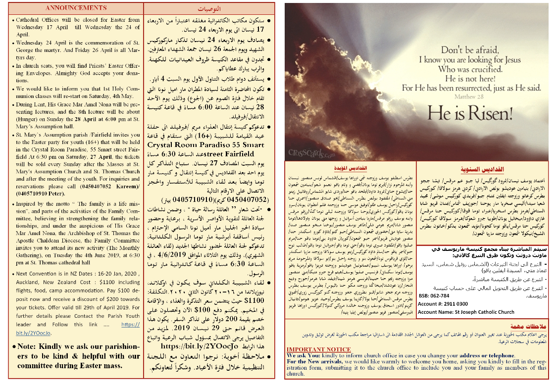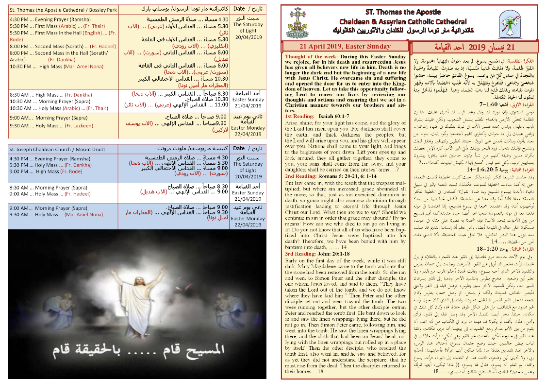 Newsletter of Easter Sunday 21/4/2019